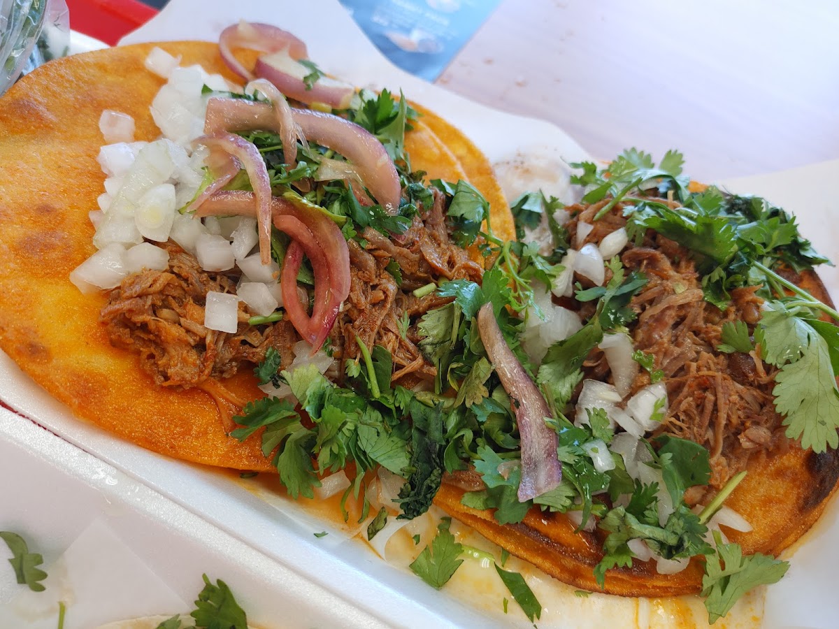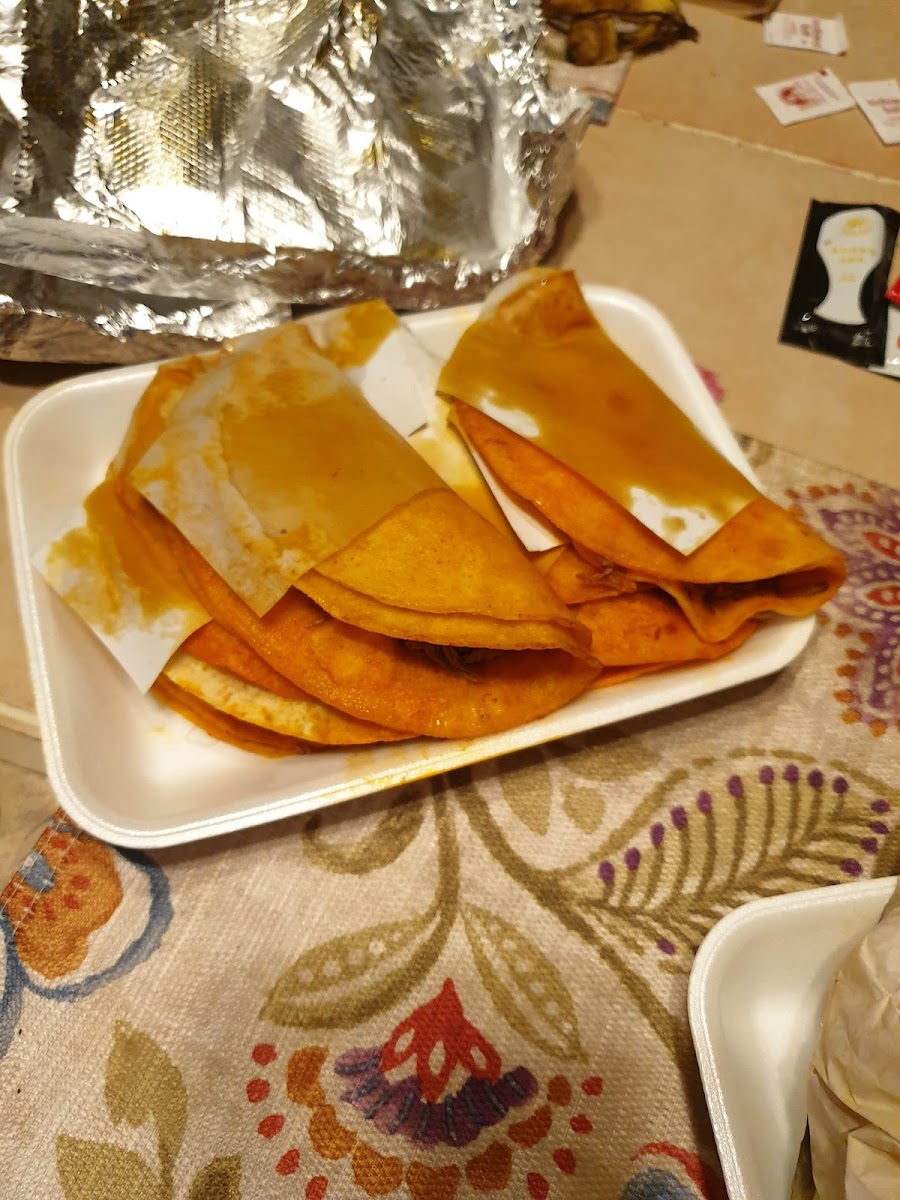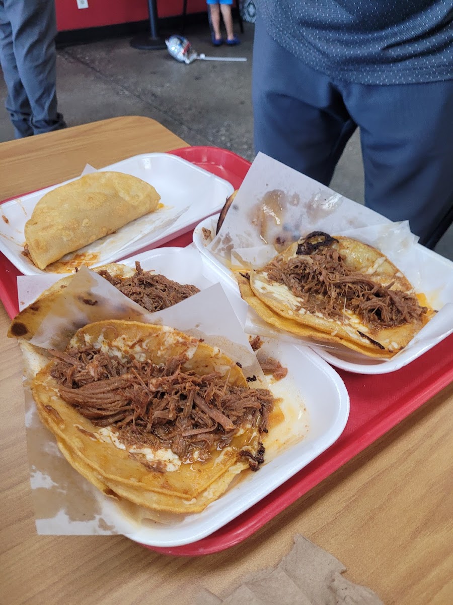 I always get birria tacos. The crunchy birria tacos are my favorite. There is a good amount of meat in each taco with flavor, I been to places where the birria has no flavor! The consomé & the red spicy salsa is amazing too. Try some birria here I recommend